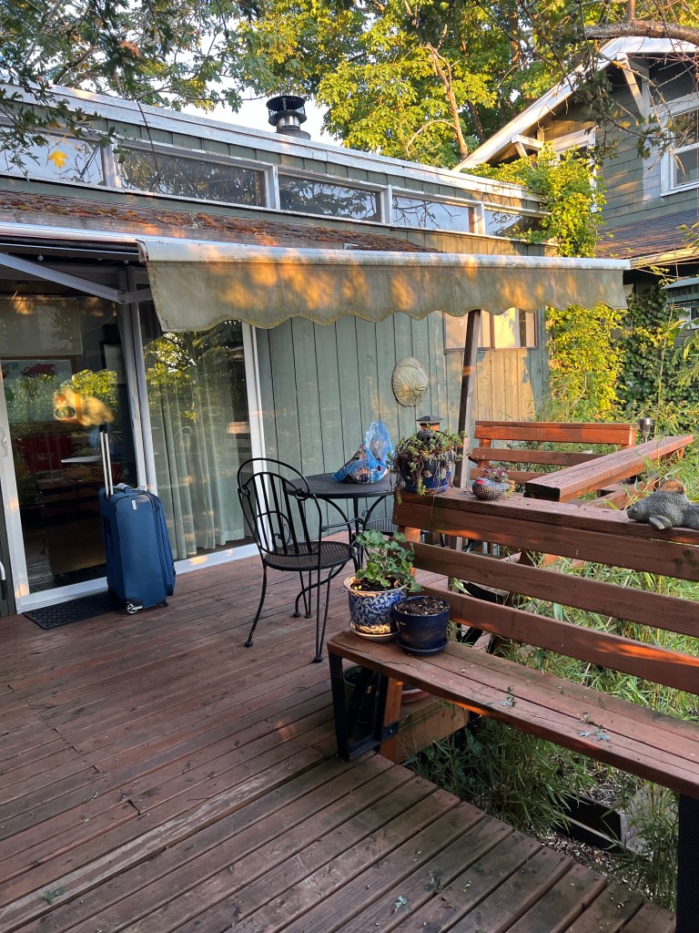 The patio area at the Airbnb I stayed at on 43rd hosted by Robert & Julia in Seattle
